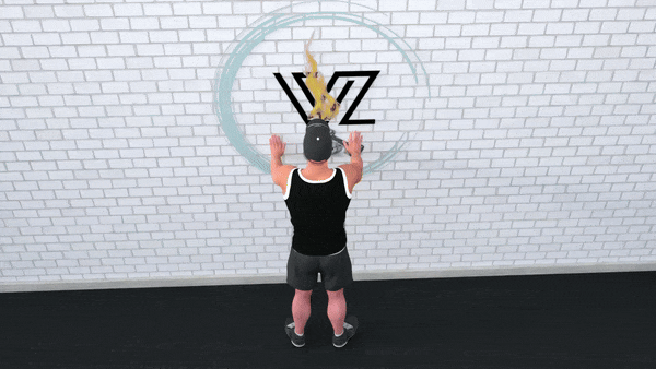 1. Stand facing a wall, arms extended at shoulder height, and place your palms flat on the surface, slightly wider than shoulder-width apart. Bend your elbows to lower your chest toward the wall, keeping your body straight, then push back to the starting position.